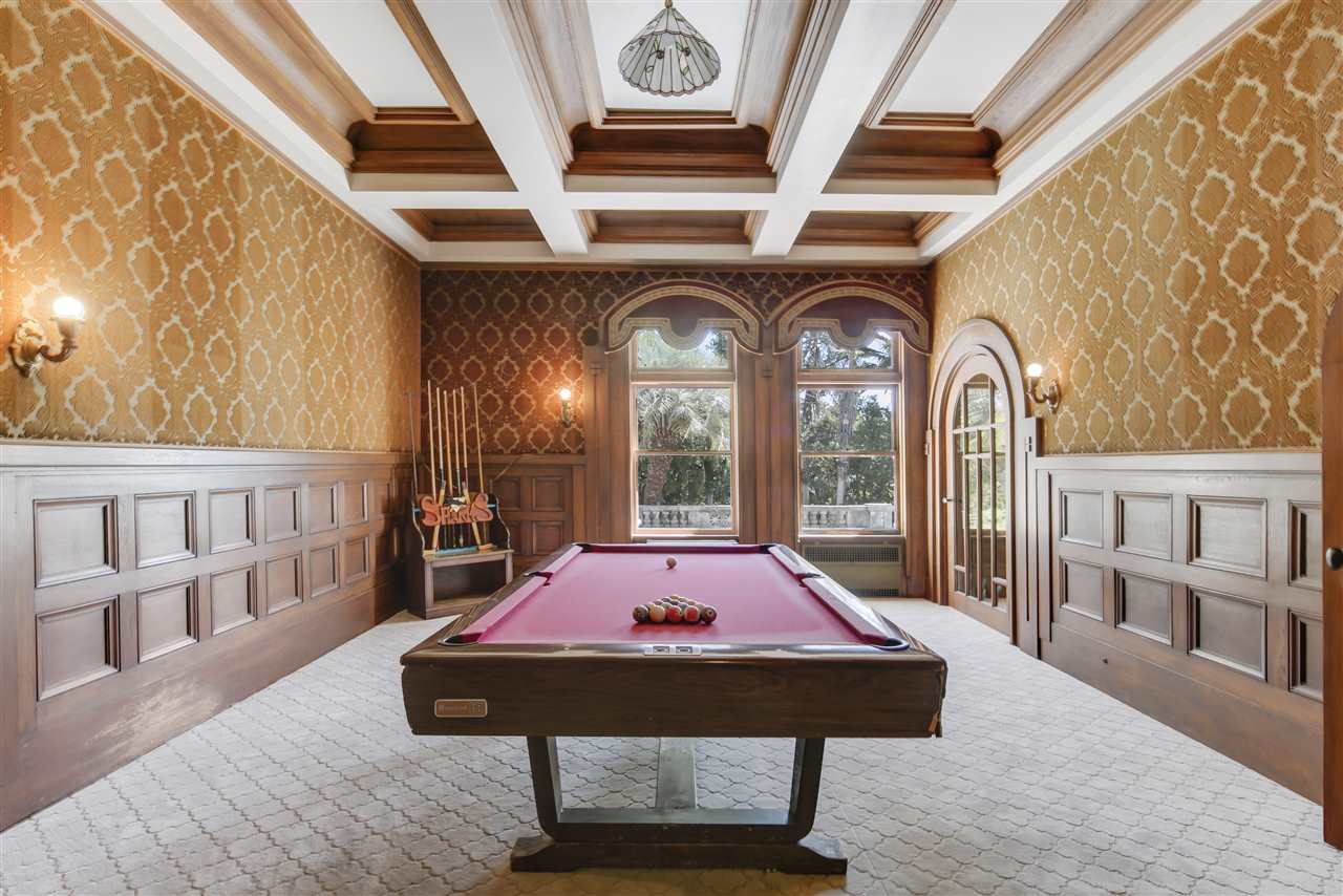 Two additional rooms of note are the Salon with its impressive ceilings, french doors and fireplace.  The view below that is of an extra room which is being used for recreation, but could also be a media room or den. Â