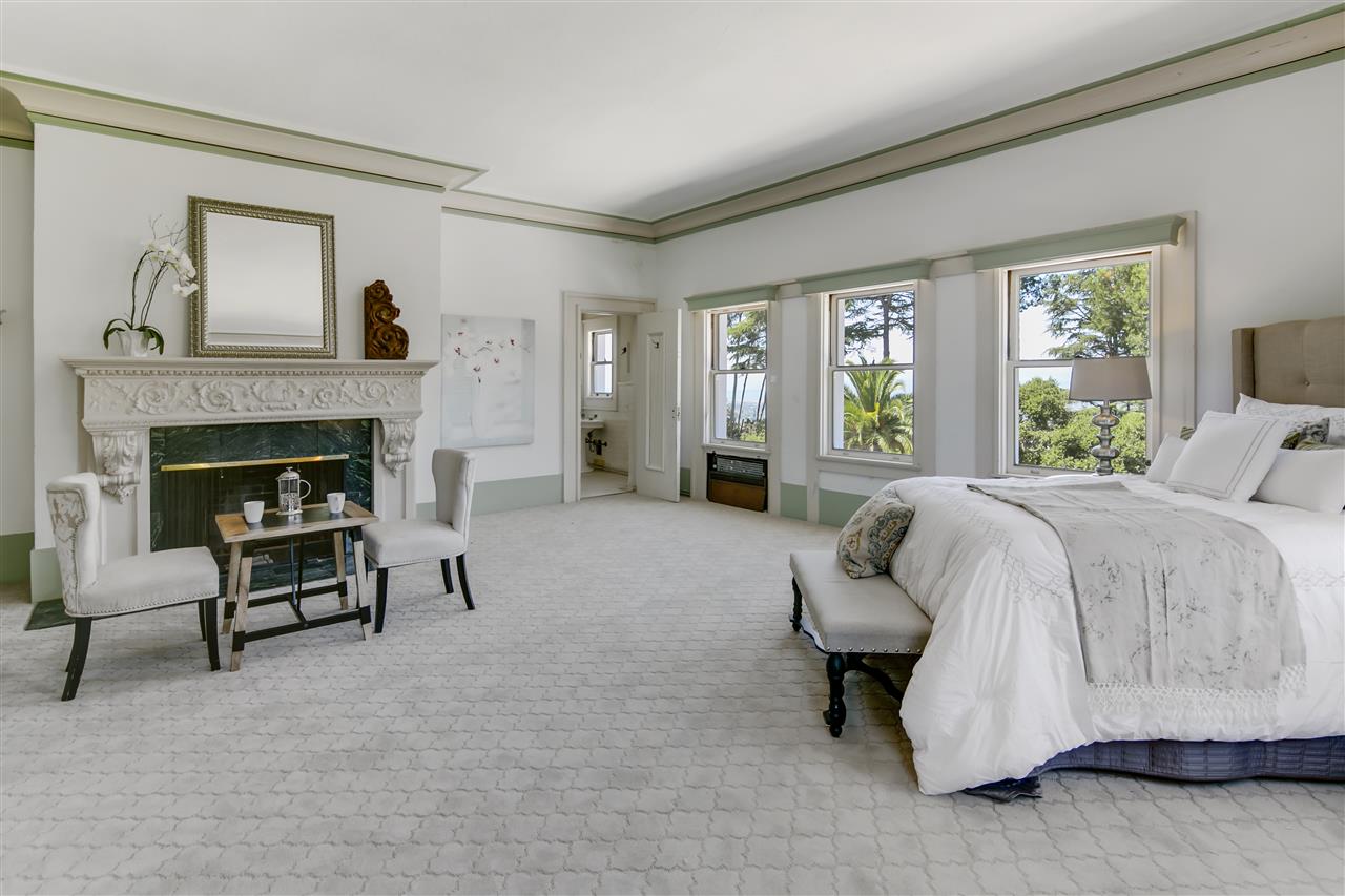 The majority of the bedrooms are located on the second floor, and each has a view the scenic Bay area below. Â The first view represents the comfort, gracious amenities, and space available in these rooms. The room in the second view has a sweeping 180 degree view of Bay, two bridges and San Francisco.