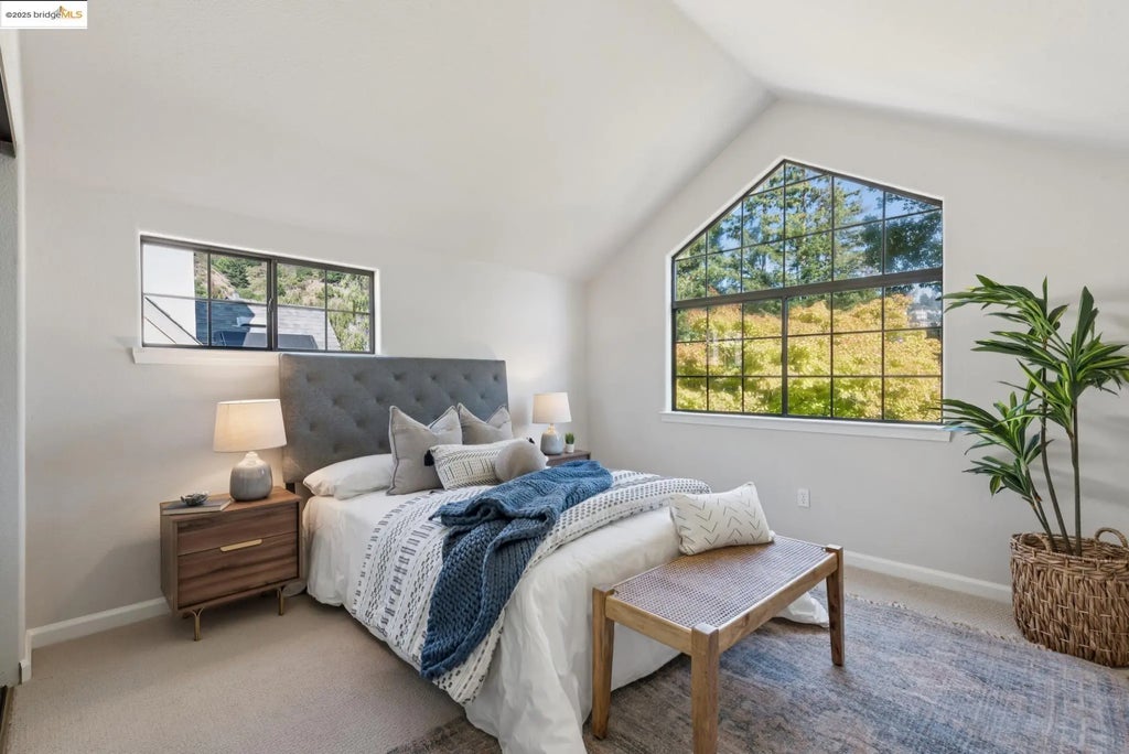 Another second floor bedroom is revealed here. Note: There are three bedrooms on this floor. These windows capture views of the well established exterior greenery.