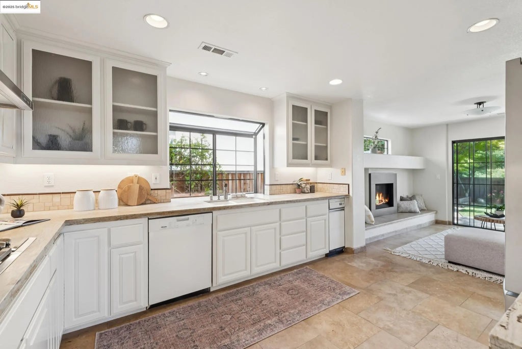 Another perspective of the kitchen reveals the very generous counter space that is ideal for food preparation. That is paired with a wide variety of storage spaces for favorite china, glassware, and serving pieces.
