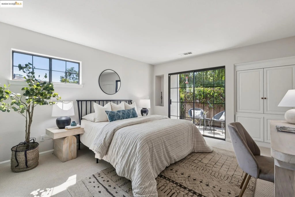 What distinguishes this bedroom is that it has its own private patio, and desirable sliding glass view doors, and floor to ceiling windows.