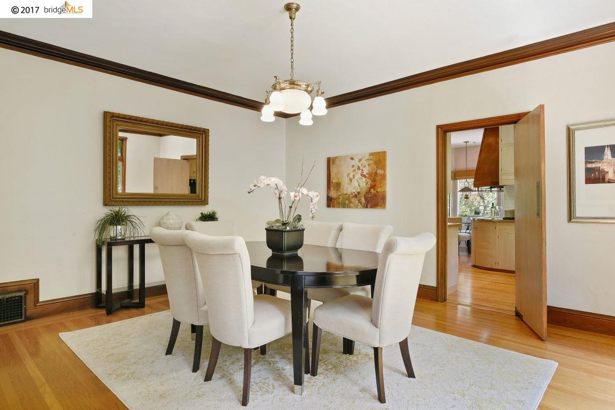 Moving to the adjacent dining room, the pleasant light from in the spacious windows creates a warm and gracious atmosphere for entertaining . Â