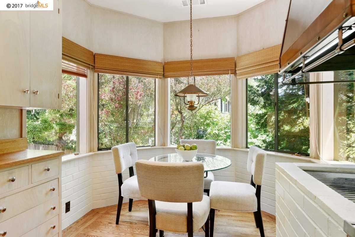 Just off the kitchen, a cozy breakfast nook is ideal for a quick meal before taking on the day's many adventures. A garden view adds to the charm. Â