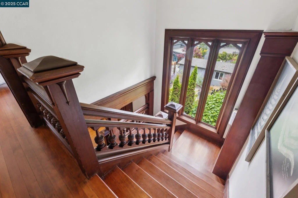 A trio of floor to ceiling windows grace the site at the stair landing.