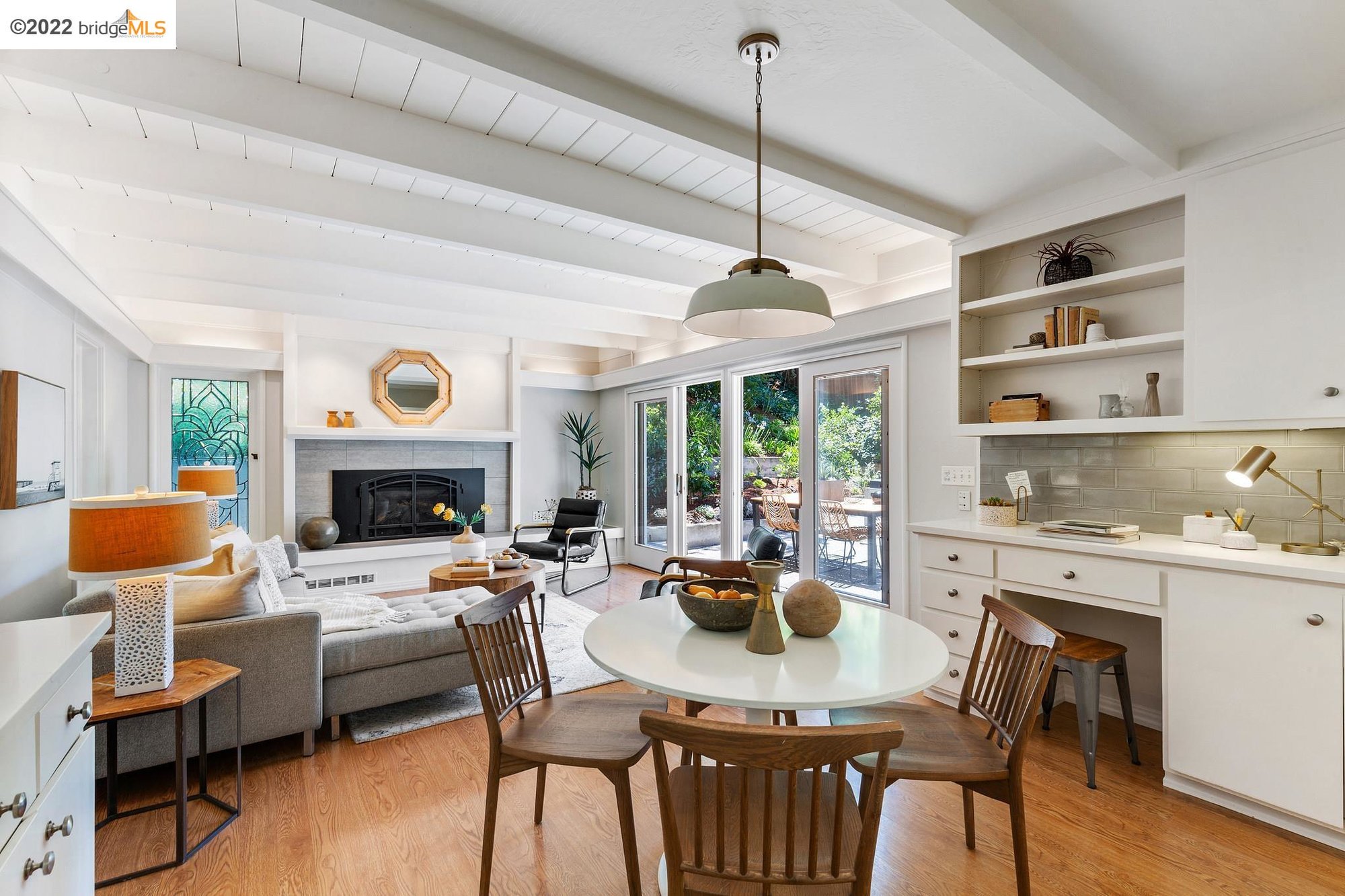 Moving further into the kitchen, there is more that sufficient room for a cozy eat in kitchen spot, and a full desk and with tall bookcases. Just steps away is the marvelous and engaging family room seen below.