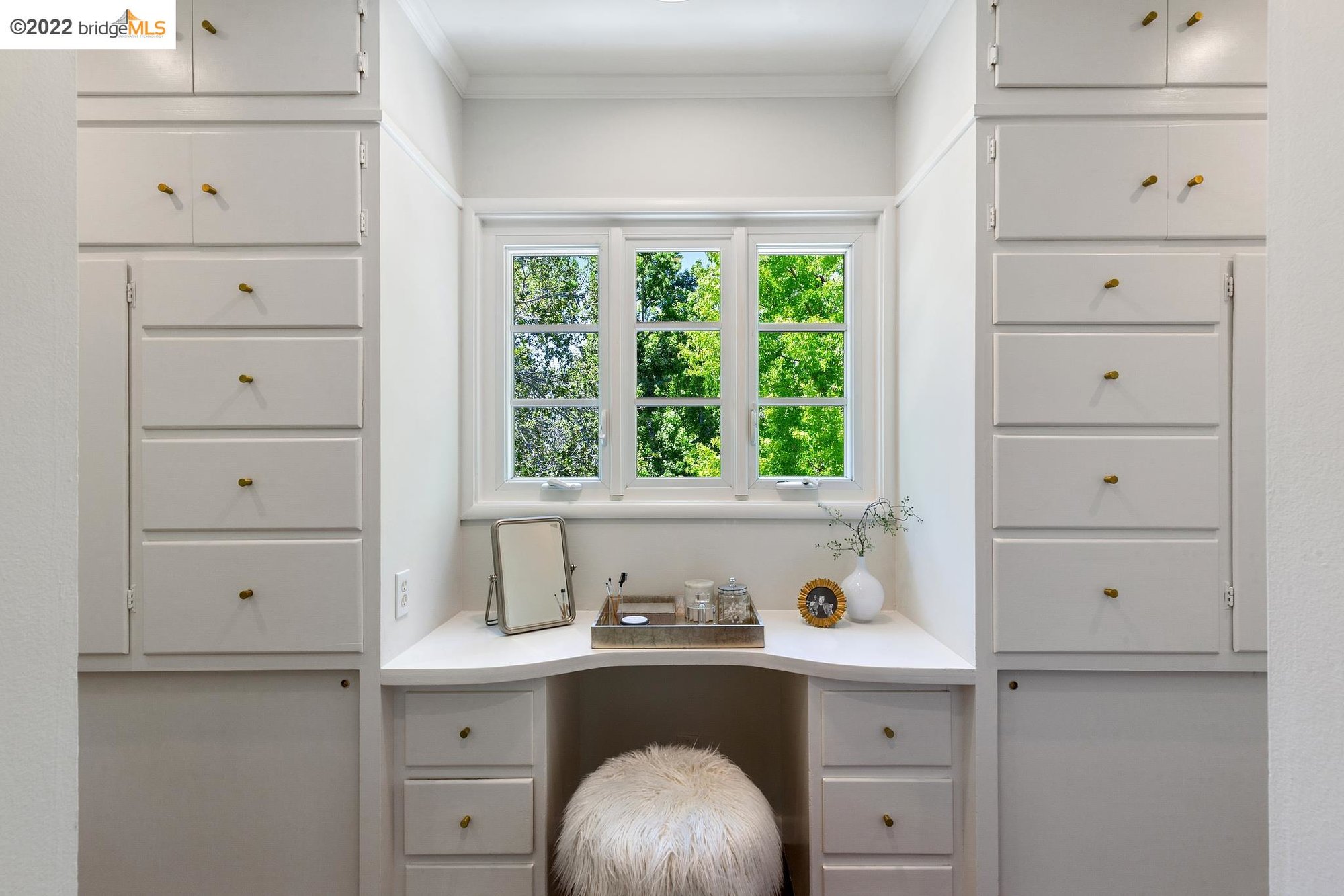 Also adjacent to the master bedroom is this delightful, and very unique, boudoir setting that provides a surprising amount of personal storage space.