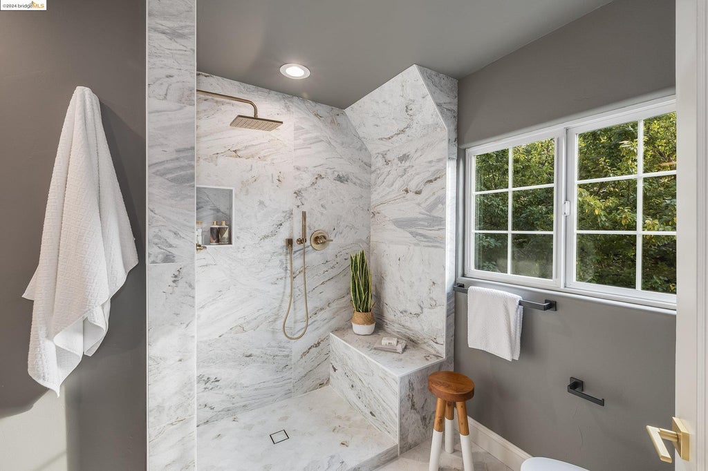 Just steps away is this outstanding en suite bathroom that has been updated to furnish the best of amenities.