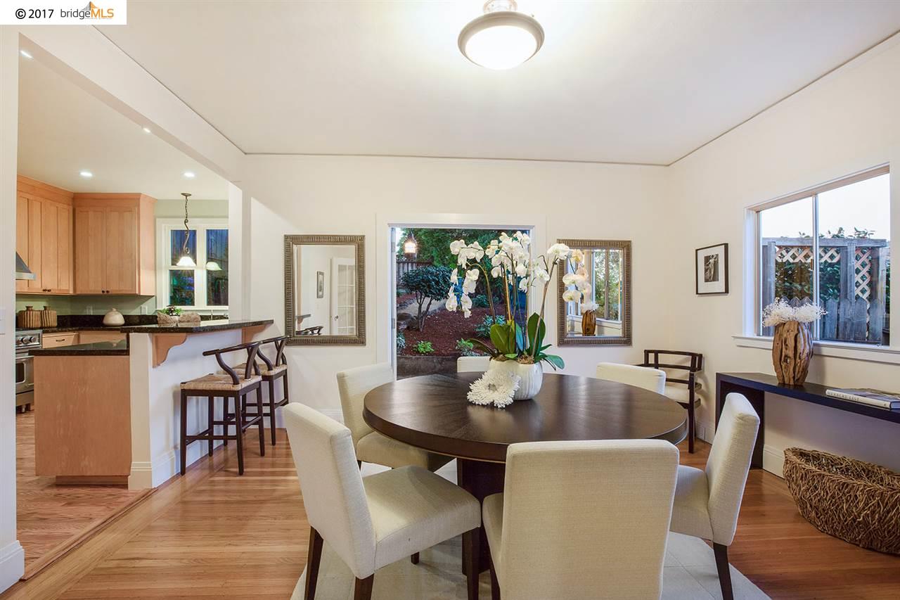As with all of the traditional homes of this era, there is a formal dining room, but here, it has been incorporated into a pleasing open floor plan that includes a breakfast bar with a stone counter, and a cheerful updated kitchen. Â Note that the far door opens directly onto the rear patio.