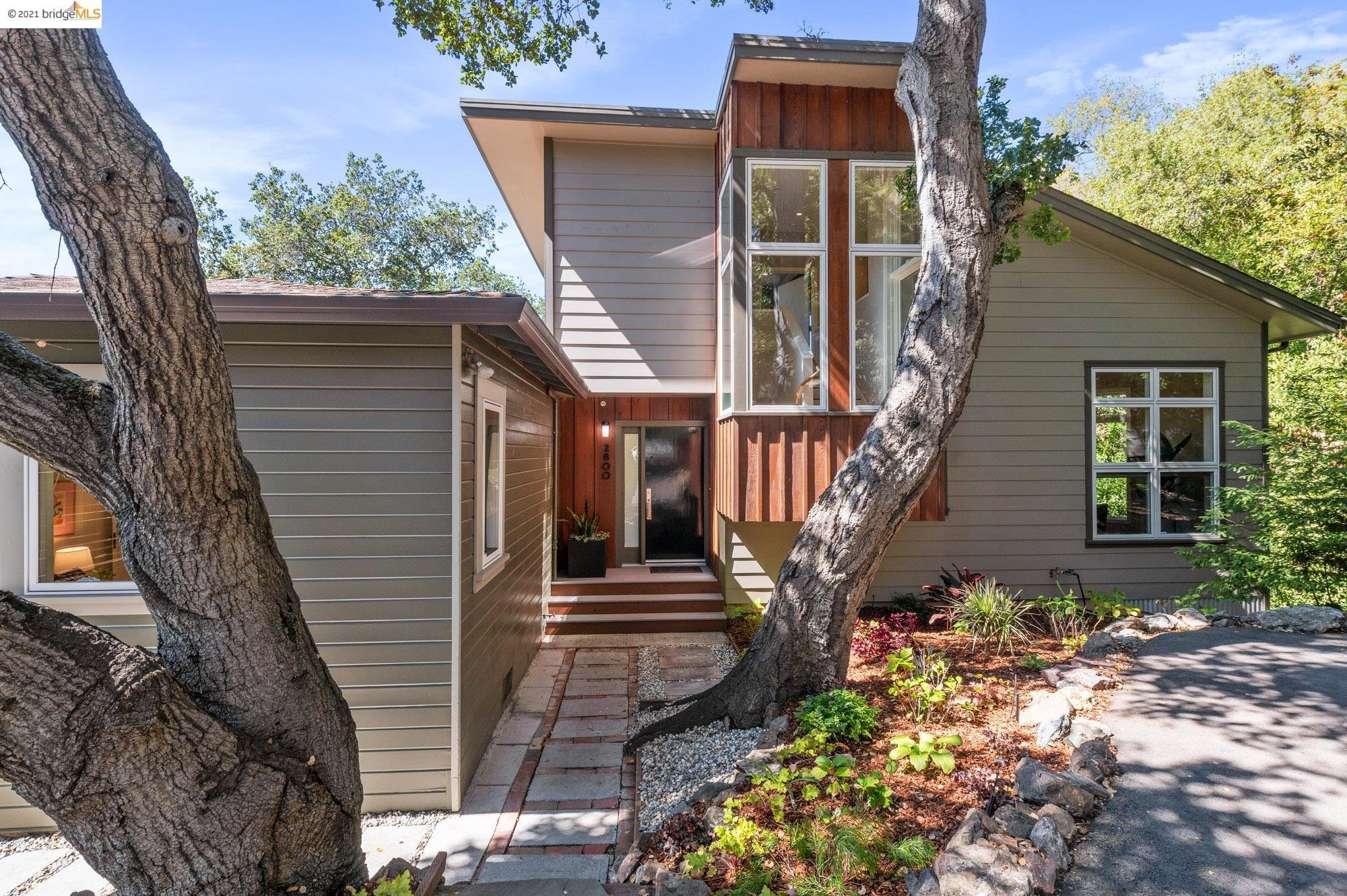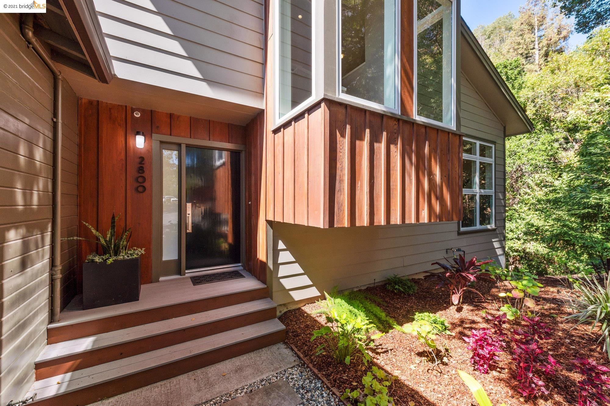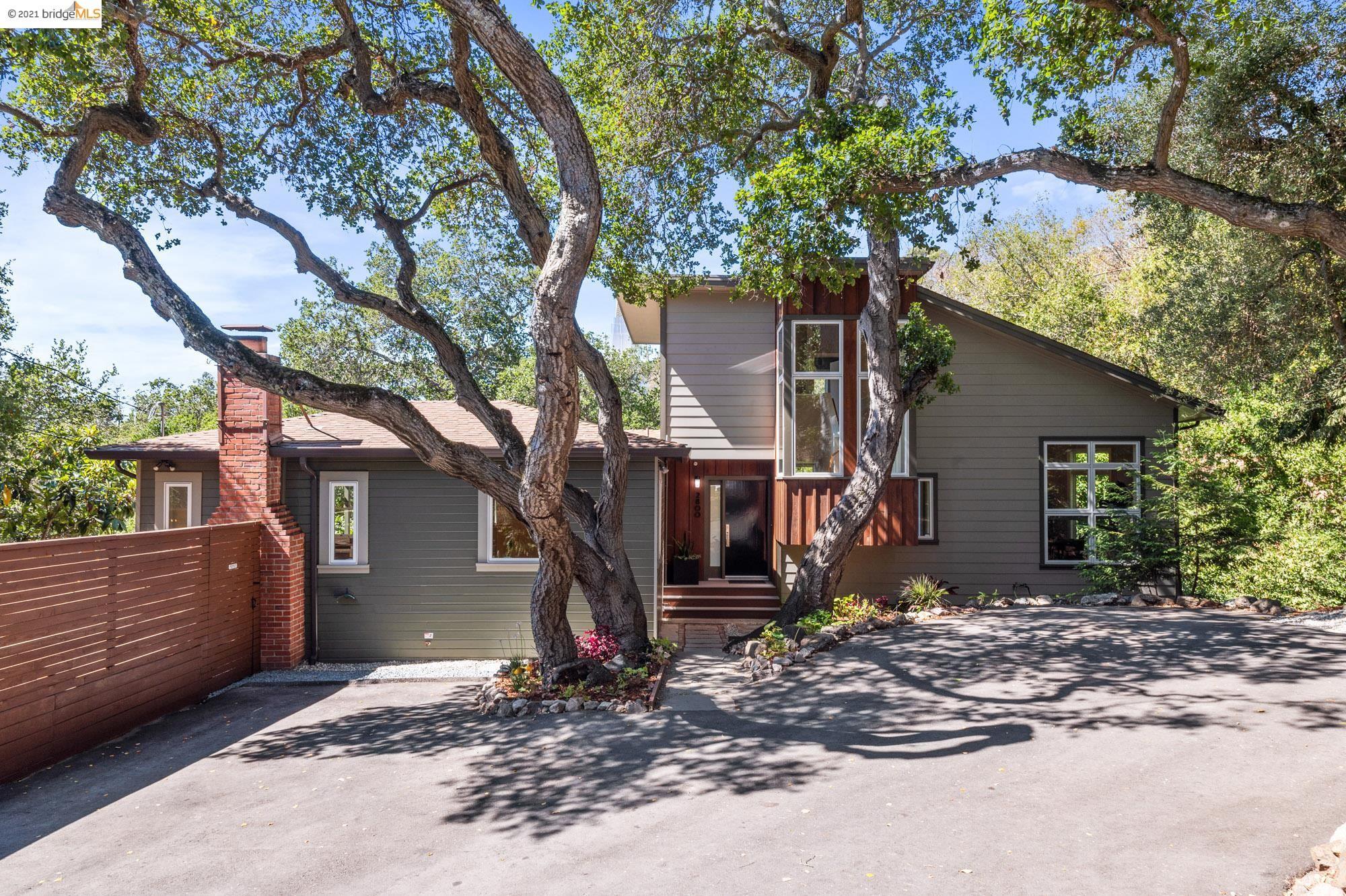 This handsome hillside home is very well located in the Redwood Heights neighborhood above Oakland at 2800 Sylhowe Road, and has impressive curb appeal with its defining old oak trees, and distinctive architecture.