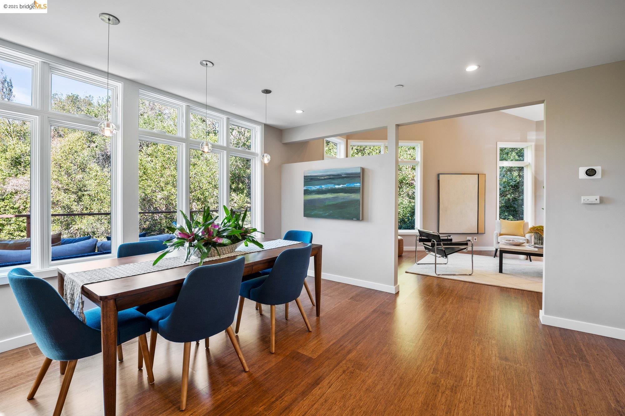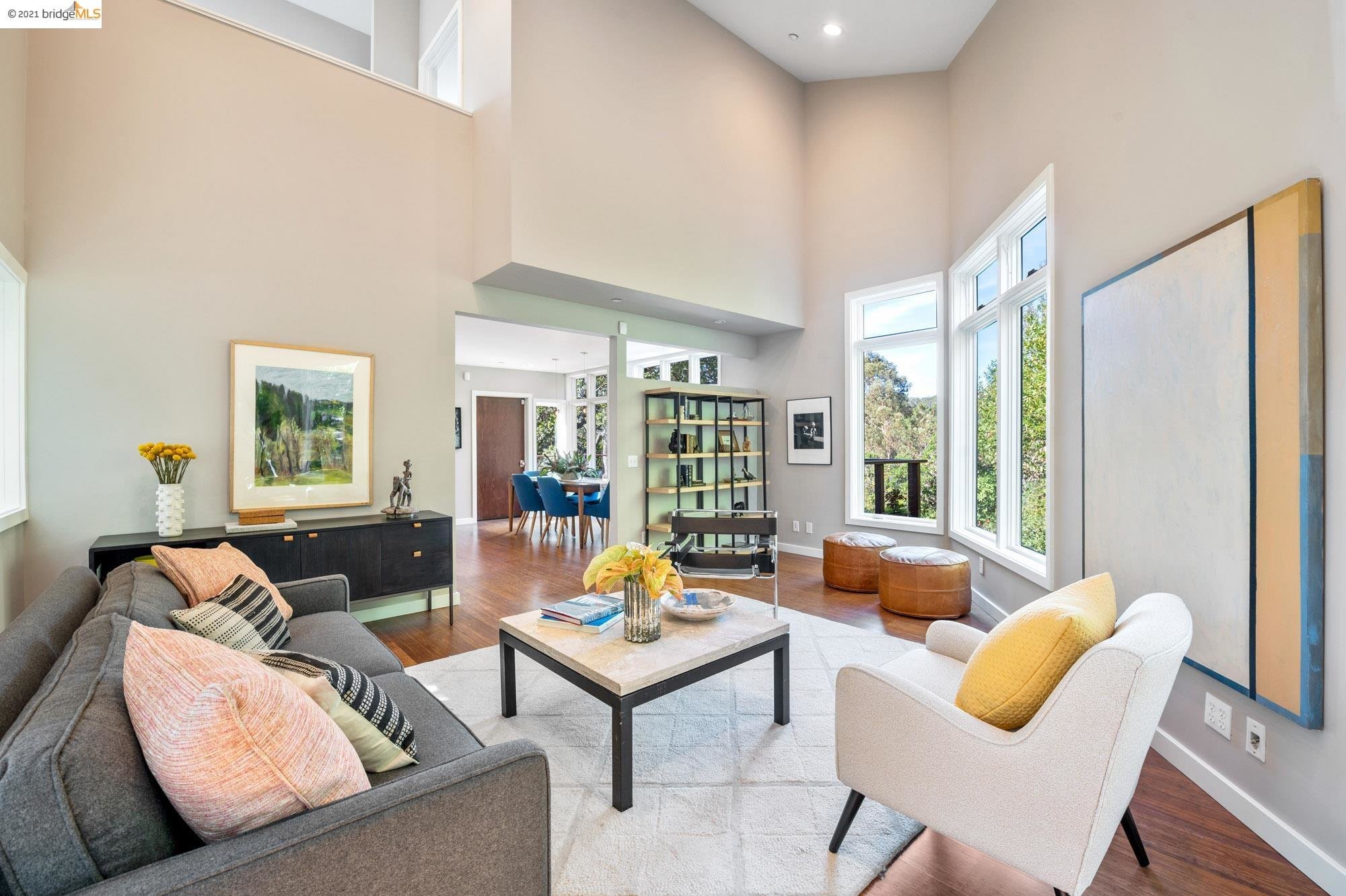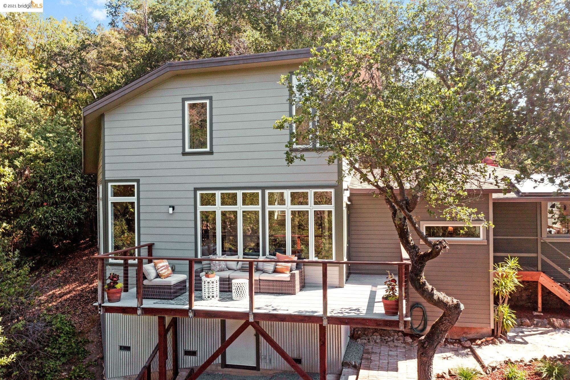 This handsome hillside home is very well located in the Redwood Heights neighborhood above Oakland at 2800 Sylhowe Road, and has impressive curb appeal with its defining old oak trees, and distinctive architecture.