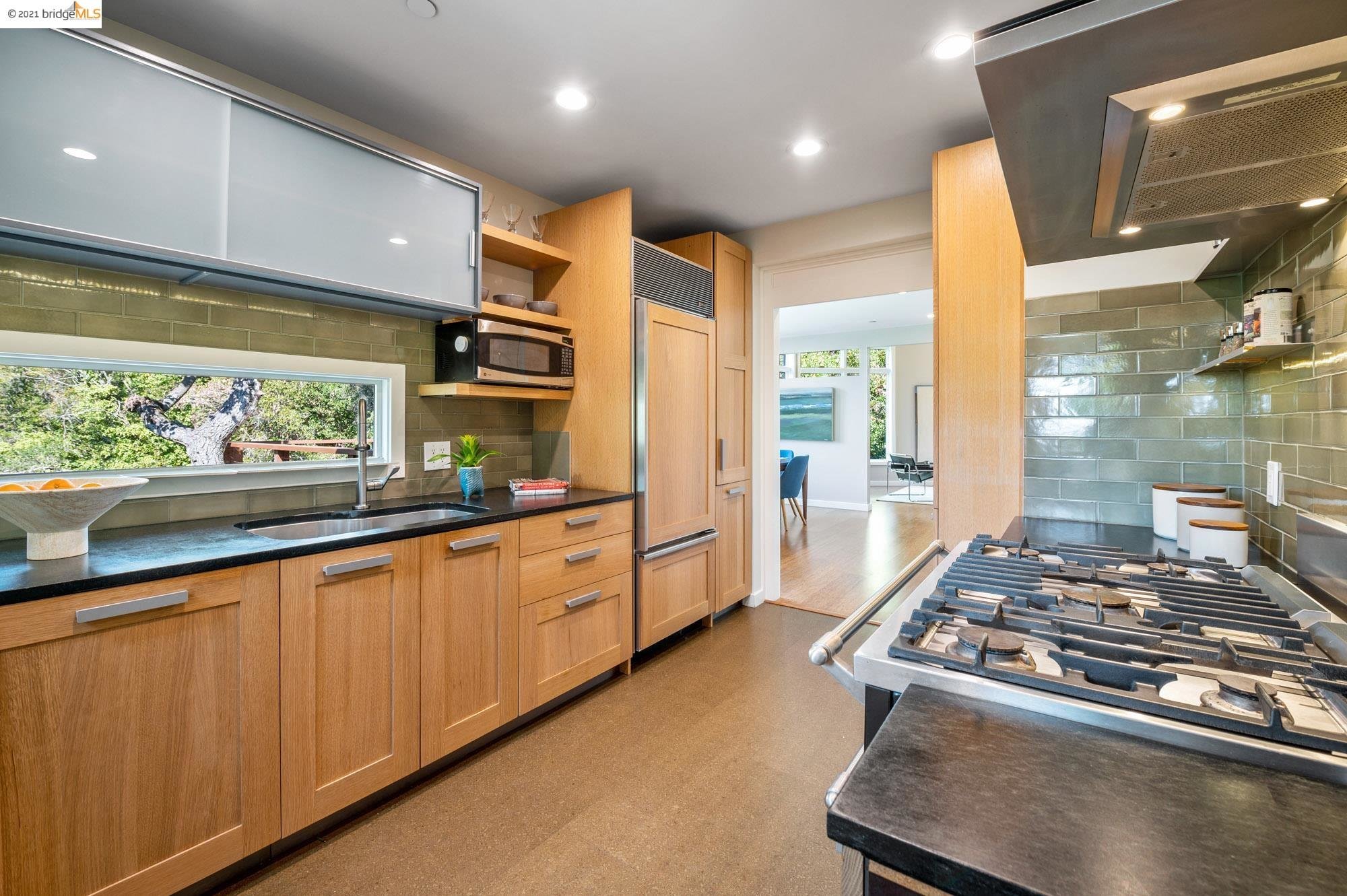 Immediately adjacent to the dining room is this innovative kitchen space where the home's renovation comes into its own.  Any home chef would desire this spacious working space, and the outstanding features that are available.