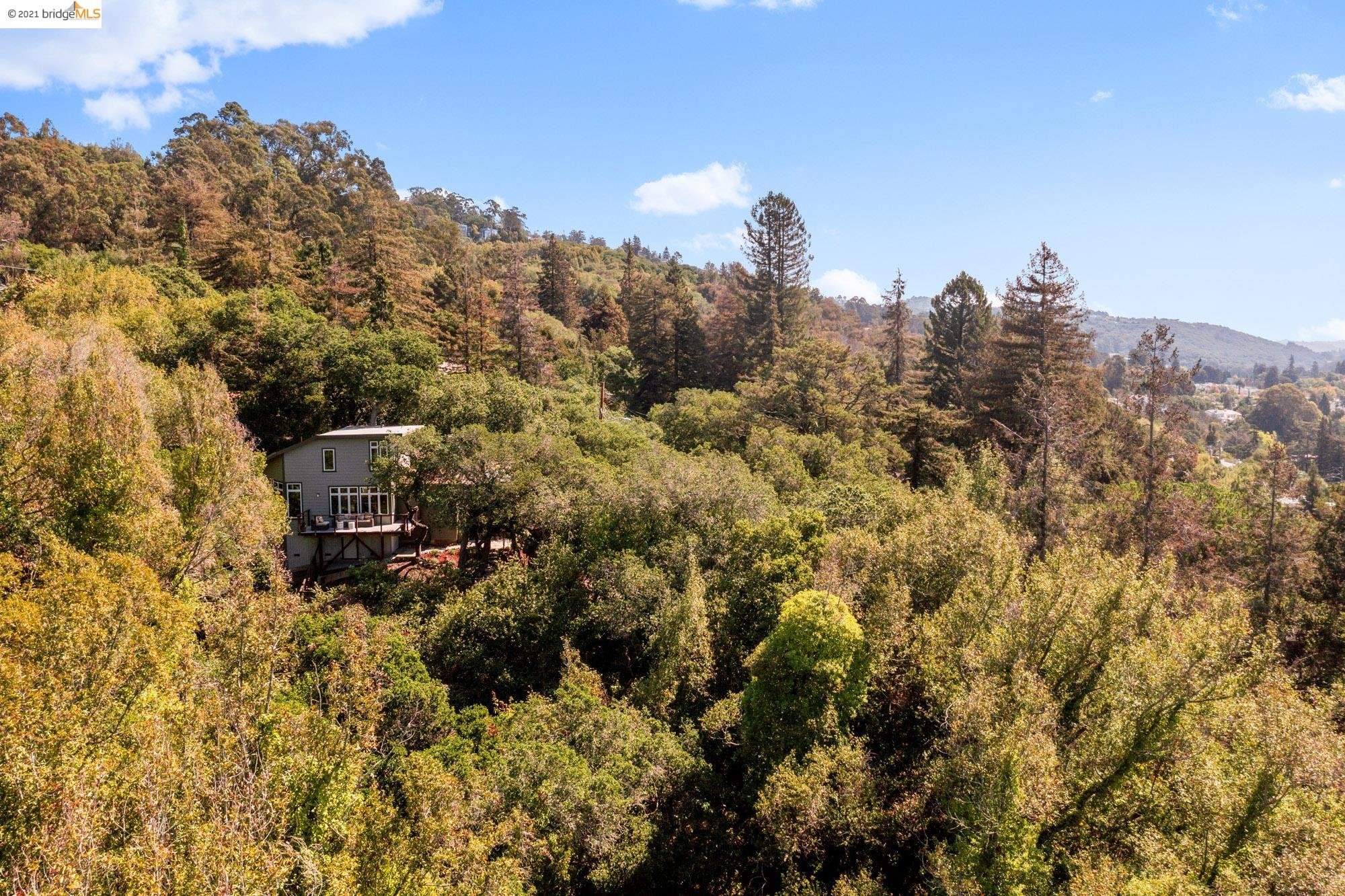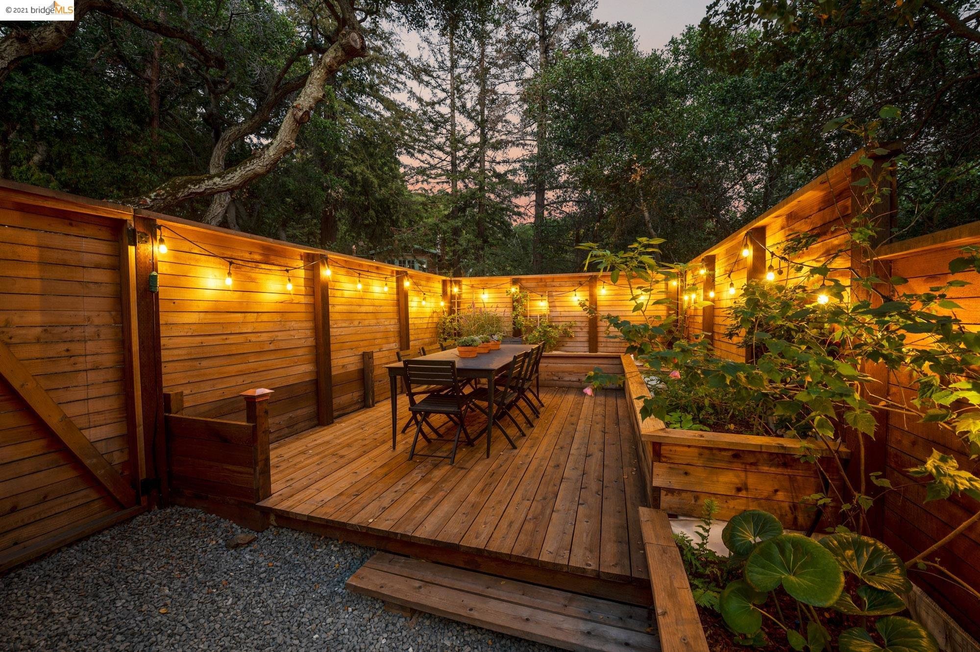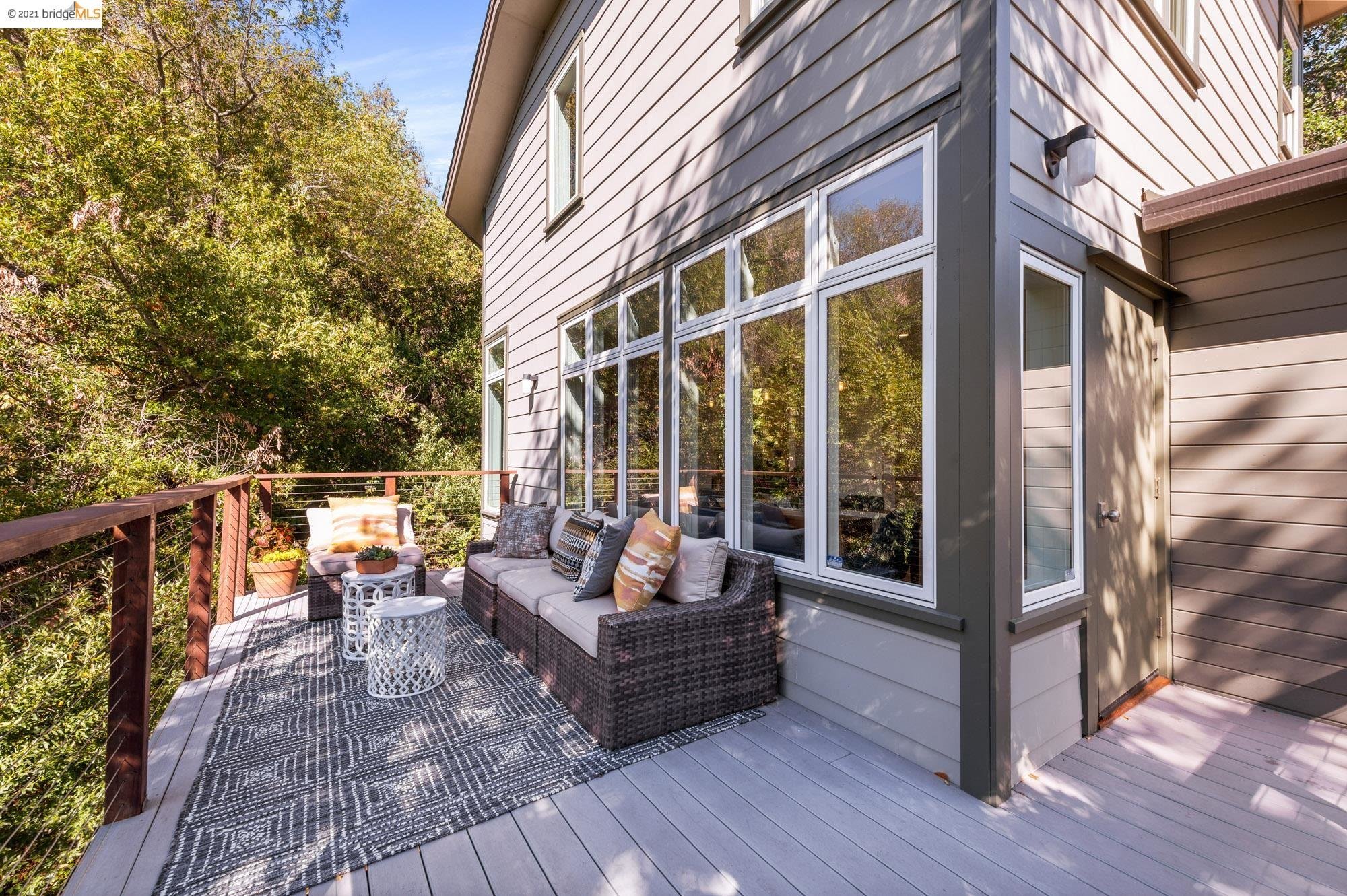 A reverse view reveals how comfortably this deck is settled in among the lush hillside greenery that surrounds the home.