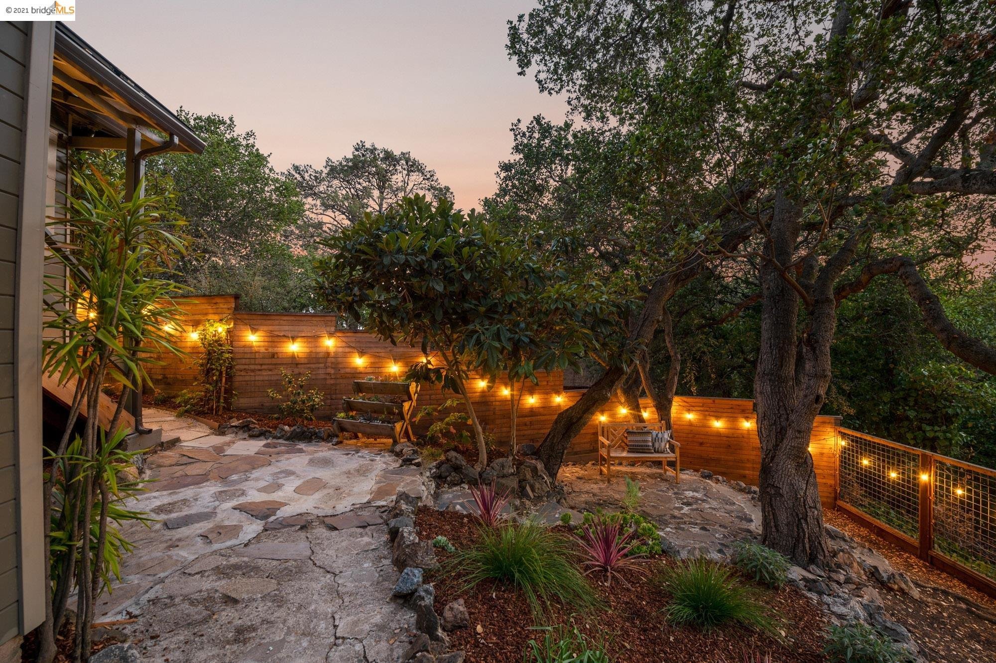 Just at the base of the stairs that are seen above, is a unique rock garden area with space for a quiet retreat and seating area.