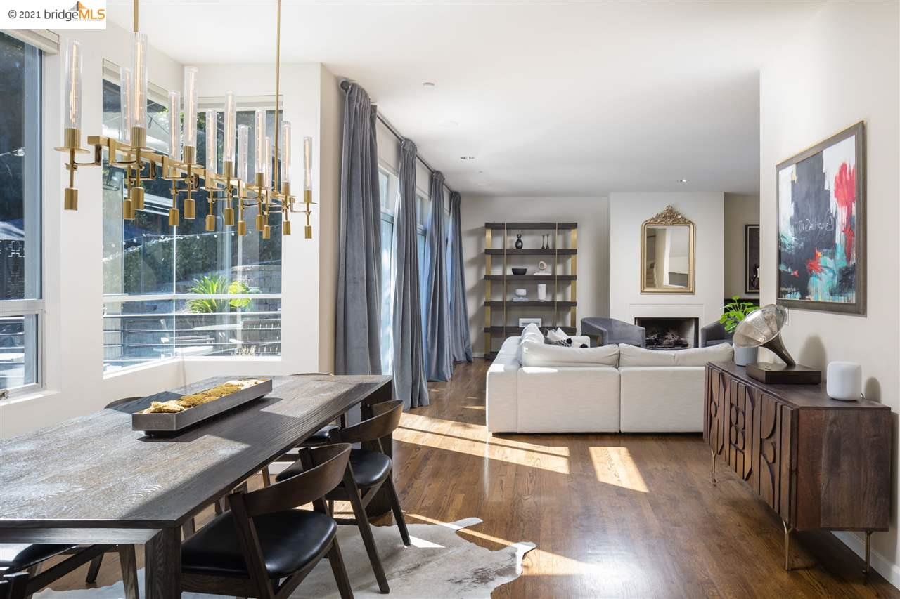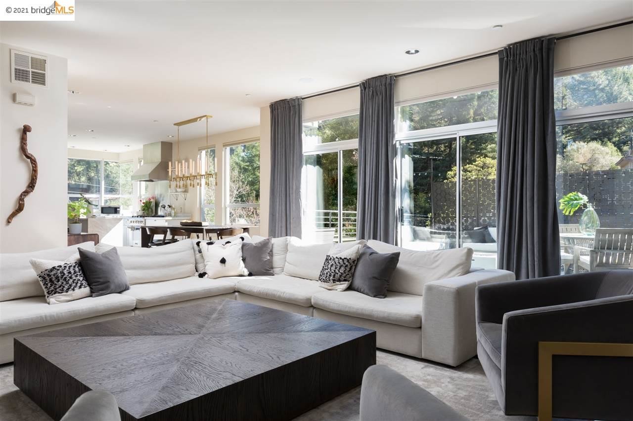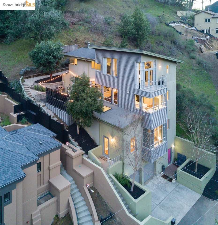 This glowing home located at 6466 Westover Drive in the Montclair neighborhood of Oakland, combines the sophistication of contemporary architecture with the soothing hillside feel that is reminiscent of Tahoe living. It is three stories high, offers 4 bedrooms and 3 1/2 bathrooms in approximately 2725 sf of living space. It has been designed with the goal of providing an easy transition from the indoors to the outdoors when desired.