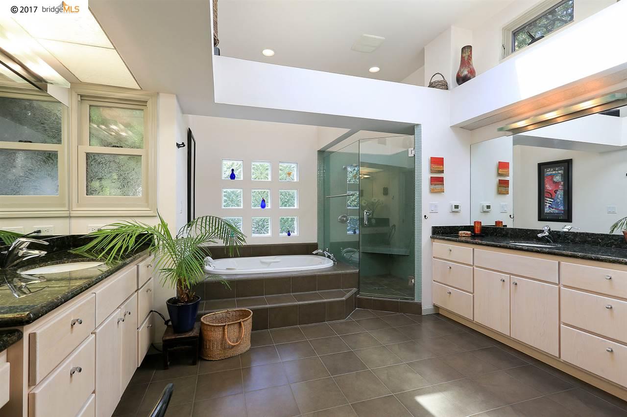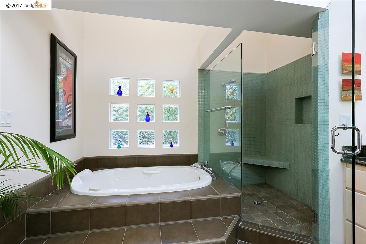 Certainly the most dramatic upgrading can be seen in the master bathroom. Â It is truly stunning, with just about every amenity that could be desired. Â Note the dramatic lighting, creative design, outstanding storage and counter space, and the unique tub with water jets. Â