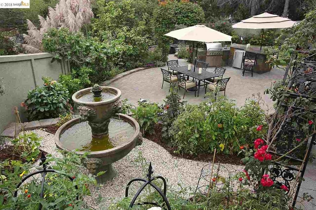 There is a soothing fountain, a multi-level paver patio, winding pathways, a vegetable garden and imaginative landscaping throughout. A fenced backyard, and multiple well established plants and trees, insure a quiet afternoon or evening when entertaining or relaxing.