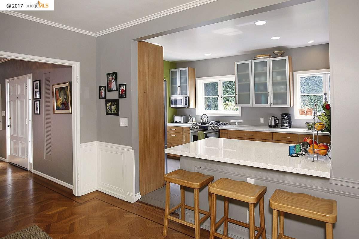 Just steps away is a newly opened, and updated, kitchen area with breakfast bar. Â Note the handsome and decorative windows in the kitchen that compliment this spacious area.