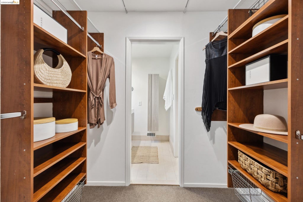 The first, seen here, is a floor to ceiling storage closet with generous amounts of storage and hanging space for one's clothing and shoes.