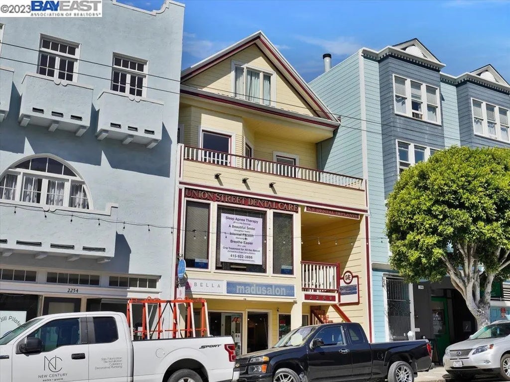 Once in a lifetime chance to own a beautiful 7,800 foot 4 story building on Union Street in the heart of Cow Hollow! Amazing views of the Golden Gate from the upper level decks. Don't miss this opportunity to own a great Trophy property! First floor is comprised of Hair Salon & Bridal Boutique. Second floor has dental office and 3rd floor are offices with two bathrooms, 4th floor has over 1600 foot suite with bathroom and deck.