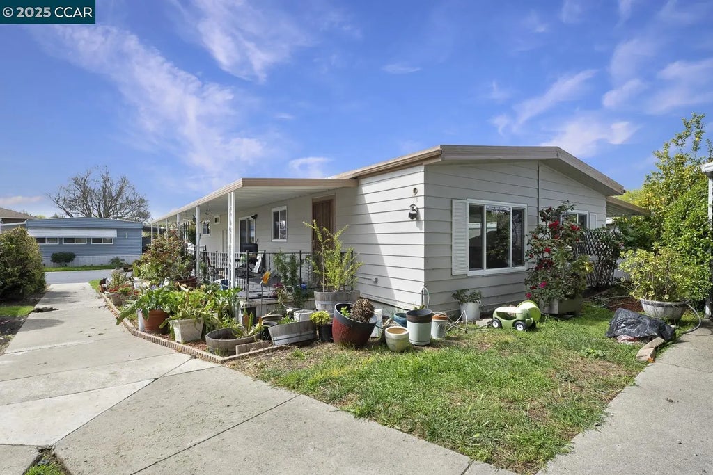 Beautiful move in ready, shows pride of ownership, manufactured mobile home in the desirable Concord Dalis Gardens Senior 55+ park. Move in ready ! NO PROPERTY TAXES. Buyer must have net monthly income of at least 3X the monthly rental space fee of $958 to qualify with park manager. Home is one of the unique 3 bedroom 2 bath and 1488 sq. ft. Home has updated kitchen & bathrooms, with newer dual paned windows in 2024, house painted inside and out last September, including the 2 storage sheds, brand new dishwasher, AC just 5 years old, new carpet for patio, water proof flooring throughout the home. Home rebalanced in December. Make an appointment for viewing and make an offer. easy to access freeways, Hillcrest Park, Todos Santos Square, and shopping.