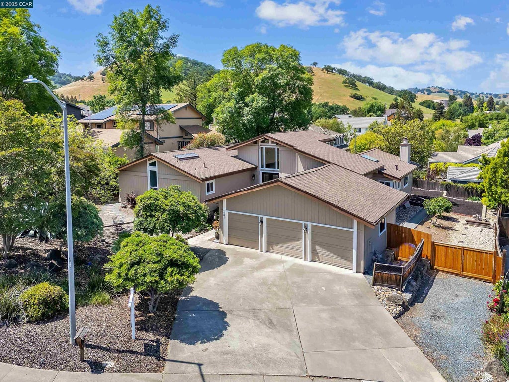 Enjoy serene hill views from this light-filled, thoughtfully updated contemporary single-story home. Mt Diablo schools with Northgate High as a possibility. Renovated in 2020, the spacious kitchen features modern cherry tundra cabinetry with full-extension drawers, quartz countertops, and high-end appliances including a 48" Bertazzoni five-burner gas range, Bosch dishwasher, GE microwave, and Samsung refrigerator. Additional upgrades include dual-pane Milgard windows, ¾" select maple hardwood flooring, and new carpet in the living room and primary bedroom. The spacious primary suite is designed for comfort and privacy, complete with a walk-in closet, a second closet for extra storage, and direct access to a private deck with a hot tub. The luxurious en suite bath includes a pedestal tub, granite counters, dual sinks, and a separate shower area. Two additional bedrooms share a convenient Jack-and-Jill bathroom, while a dedicated office/studio provides an ideal work-from-home setup. The side yard offers potential for a garden or a sport court, adding to the home’s versatility. This beautifully updated home is move-in ready and waiting for its next chapter.