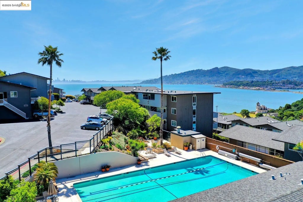Welcome to this bright and airy top-floor condominium in the desirable Tiburon Hill Estates. This 1-bedroom, 1-bathroom unit offers approximately 672 square feet of living space and featuring stunning panoramic views of the bay and surrounding hills. Enjoy the privacy of having no neighbors above or below. The open-concept floor plan seamlessly connects the updated kitchen, dining area, and living room, leading to a spacious private deck—perfect for outdoor entertaining and soaking in the views. The contemporary kitchen features ample custom counter space and cabinetry. Additional highlights include generous closet space, a dedicated carport parking spot, and an extra storage room. Community amenities encompass a sparkling pool and clubhouse. Conveniently located near Highway 101, the Golden Gate Bridge, Blackie’s Pasture, the Tiburon Ferry, and local shopping and dining options.