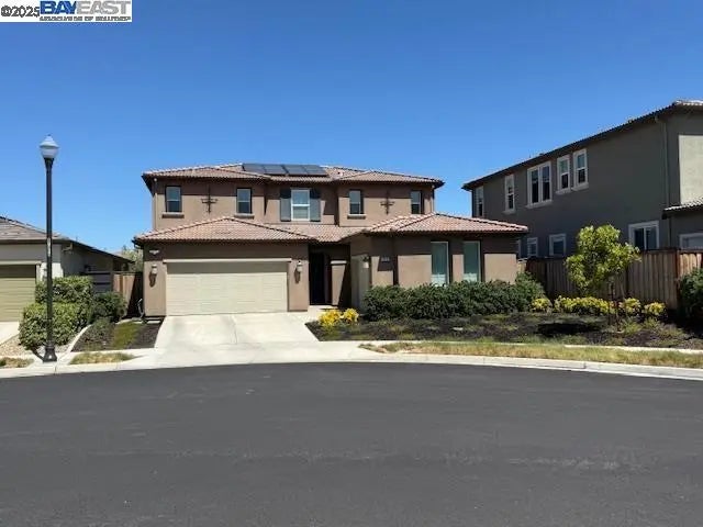 This exceptional SHEA-built home offers unmatched value in Tracy Hills with over $180K in premium builder upgrades, smart tech, and energy-efficient features. Ideally located on a quiet court walking distance to the new Corral Hollow K8 school, community pool and parks. Enjoy 5 bedrooms--one ensuite downstairs, 4.5 baths, versatile flex room, and 3-car garage. (Be sure to check out the Floor Plan.) The kitchen showcases GE Monogram appliances, quartz counters, a 6-burner range, dual ovens, and a walk-in pantry. West-facing front door--making backyard shady! Owned 16-panel solar system is paired with a 20kWh storage battery for whole-house backup and instant switch-over during outages. Smart app control for HVAC, lighting, Hunter Douglas Powerview shades, video security and more. Whole-house water softener, RO in kitchen. Dual-zone HVAC, whole house fan, and upgraded insulation ensure year-around comfort. Low-maintenance backyard features quality turf, mandarin orange tree, rubber mulch, and a California Room patio with natural gas hookup. EV charging, upgraded flooring, custom cabinetry, epoxy garage floors, and thoughtful tech throughout. Near I-580 and ACE train. With top-tier Shea construction, location, and upgrades, this home stands out as the smartest buy in Tracy Hills.