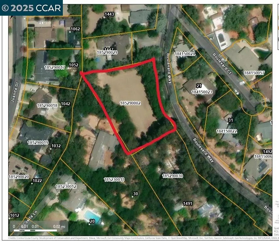 A Rare Find: A .73 acre lot (31,799 SF) near downtown Walnut Creek! This beautiful, open lot is edged by mature trees and features an open pad for building a dream estate or for subdivision. County planners have indicated a 2-parcel subdivision with an ADU on each parcel is probable. However, effective July 1, 2025, SB 1123 may allow for up to 10 residential lots on this parcel, despite its current zoning! Additionally, the new law requires the County to approve or deny the application within 60 days. If no response is given within 60 days, then the application is deemed approved. Please investigate this new law to decide what works best for your needs. But wait, there’s MORE! The owner is also selling an ADJACENT 1.2 acre property in Lafayette that might be annexed to this lot, if desired, for even more building area. Close to town, BART, freeways and excellent schools! Buyer to conduct their own investigations for lot development and all other items that pertain to the property.