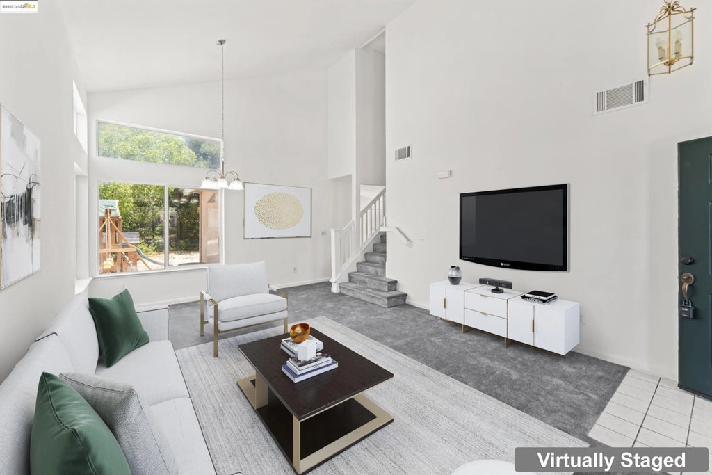 Step into this bright and inviting open-concept home featuring fresh paint, large windows, and beautiful laminate wood flooring throughout the main level. The spacious living area offers a seamless flow into the dining space and kitchen, making it ideal for entertaining. A cozy fireplace adds warmth and character to the living room, while the sliding glass door leads out to a private backyard, perfect for outdoor gatherings or relaxing in the sun. The kitchen is equipped with white cabinetry, granite-look countertops, ample storage, and a full suite of appliances. Natural light pours into every corner, highlighting the clean lines and airy ambiance. Whether you're a first-time buyer or looking to upgrade, this home combines comfort and functionality in a charming and well-maintained setting.
