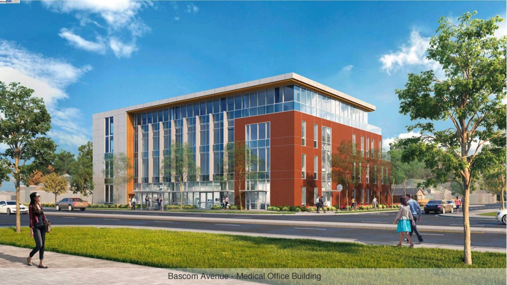 Approved Class A 35000+ sq. ft Medical Office Building Parcel in San Jose California. Are you looking for a prime location to establish or expand your medical practice? Do you want to own or lease a state-of-the-art facility that meets your needs and expectations? If so, you don’t want to miss this opportunity to acquire or lease a medical office building parcel with approval for over 35,000 SF of Class A medical space. This parcel is in a prime location in San Jose, California, near Santana Row and San Jose Google Village. It has great exposure and access, and is close to other medical and professional services, as well as shopping and housing options. It is also conveniently located near major highways, public transit, and hospitals. The parcel has been approved for a medical office building that can accommodate various types of medical specialties and services. The building will feature modern design, efficient layout, ample parking, and advanced technology. You can customize the building to suit your specific requirements and preferences. This building shares its architect with Kaiser, Santa Clara Valley Medical, and SF Medical. Whether you are looking for a long-term investment or a flexible lease option, this parcel offers you a rare chance to secure a premium medical office space in a growing and desirable market. Don’t let this opportunity pass you by. The City of San Jose is also flexible about the type of housing, whether it is market-rate or affordable.