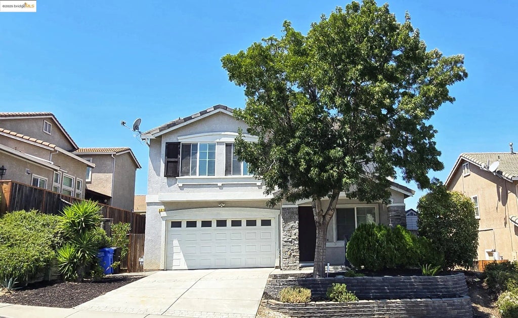 Step through the inviting covered porch into a spacious living room featuring classic raised-panel wainscoting, crown molding, and an adjacent formal dining area. The open-concept kitchen is a chef’s delight, complete with a stylish island, pantry, stainless steel refrigerator, and modern finishes—perfect for entertaining. The family room, with its cozy gas fireplace, creates a warm gathering space for friends and family. The thoughtfully designed floor plan includes a guest bedroom and full bath on the main level—ideal for visitors or a home office. Downstairs showcases new, high-quality laminate flooring throughout, adding a sleek, modern touch. Upstairs, you’ll find three additional bedrooms, including a versatile bonus room, and a serene primary suite with a private office nook, walk-in closet, and luxurious en-suite bath. A convenient upstairs laundry with a washer and dryer is also included. The backyard offers a great space for entertaining or weekend relaxation. Conveniently located near Bay Point BART, with easy freeway access and just minutes from shopping.