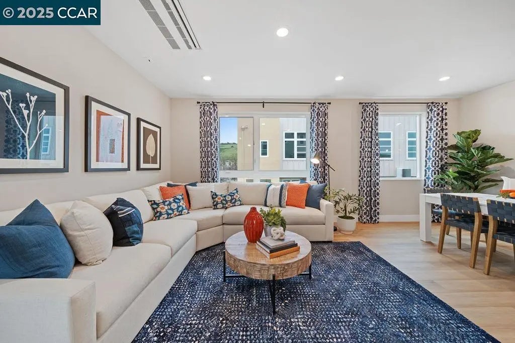 Welcome to modern living at Fusion! This brand-new 3-bedroom townhouse boasts 2,019 square feet of sophisticated living space. With its walls of windows flooding the interior with natural light and an open concept floor plan, it’s perfect for entertaining and comfortable living. The open family room and gourmet kitchen feature shaker cabinets, quartz counters, a designer backsplash, and a large island, making it ideal for gatherings. Step outside onto the balcony located off the kitchen, where you can enjoy fresh air and extend your living space outdoors. Conveniently located on the main level is a half bath.The upper floor features a spacious primary suite with a large walk-in closet and a spa-like bathroom. Two additional bedrooms provide ample space for family, guests, or an office, and a full bathroom is conveniently located nearby.This townhouse comes equipped with in unit laundry, 2-car side-by-side garage & solar panels. Part of a boutique community of 55 residences, Fusion offers stylish, low-maintenance living close to top-rated schools like Moreau Catholic high school, Cal State East Bay, close to downtown Hayward, dining, shopping, and major commute routes including BART, 880, 238 & the San Mateo Bridge. Multiple open-concept floor plans are available now!