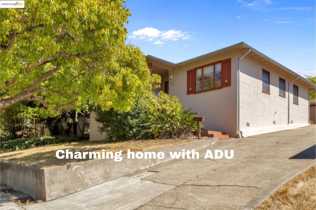 Top of the hill with full southern exposure, this sunny home built in 1948, offers 1,290 square feet of living space with two bedrooms and 1.5 baths. Large detached garage, a guest house, with extensive garden surrounded by tall privacy hedges. Original details add warmth throughout, including hardwood floors that remain in excellent condition. A true highlight is the versatile Accessory Dwelling Unit (ADU)—approximately 270 square feet—complete with a full bath, kitchenette and AC. Perfect for generating rental income, hosting guests, or creating a private retreat. Outdoors, the expansive 7,128 square-foot lot is graced with mature fruit trees and enhanced by unique bonus structures. Start your mornings in the whimsical folly, ideal for coffee, a private office, or a quiet retreat. The original shed still stands offering storage. The garage with shared driveway provides ample parking. This Oakland gem is full of potential. A wonderful opportunity for both homeowners and investors alike!