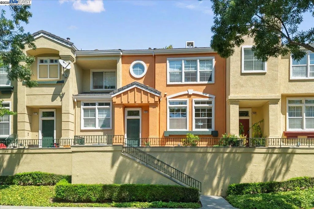 Just Reduced $50,000! Stunning 3 bedroom townhouse in Liberty Commons, one of Fremont's most desirable gated communities. In move-in condition, this unit features updated kitchen w/white cabinets, quartz countertops, mosaic tile backsplash, breakfast bar & newer stainless steel French door refrigerator, gas range & dishwasher; spacious, bright living room w/natural light, fireplace, built-in shelving & 65" flat screen TV; formal dining room; primary bedroom w/vaulted ceiling, large walk-in closet & en suite bath w/dual sink vanity, tub & stall shower; inside laundry; skylight; fresh paint; refinished Chinese maple flooring on main floor/newer eucalyptus flooring upstairs; dual pane windows & blinds; six panel doors w/new satin nickel levers; newer central heating & air conditioning; newer water heater; Smart Home features: Nest thermostat, wired Nest smoke alarms/CO detectors, front porch irrigation system, MyQ garage door system & Ring doorbell; charming front porch w/sitting area & planters; extra-deep 2 car garage w/roll-up door & opener, storage cabinets, shelves, refrigerator & Tesla EV charger. Resort-style community features swimming pool, spa, clubhouse & ample guest parking. Centrally located near Fremont's Downtown District.