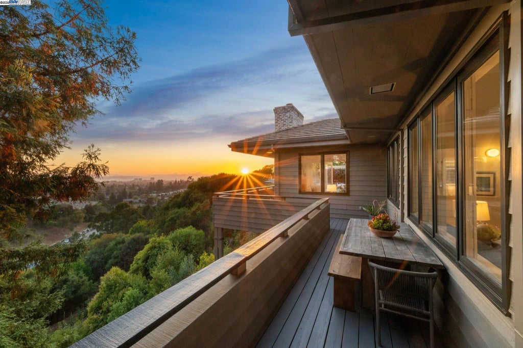 Up a private wooded way on distinguished Roble Road, in an exclusive enclave between the Claremont and Rockridge neighborhoods, this elegant 4+BD/4.5BA contemporary home is a rare find with a full-service 1BD/1BA in-law unit, stunning San Francisco Bay views, three en-suite bedrooms, and multiple decks for indoor/outdoor living. Bay Bridge and Golden Gate views are the backdrop to the 3659 SQFT home’s luxurious living. Entertain or relax with family and friends in the grand living room with walls of windows, a coffered ceiling, built-in shelves, a powder room, and deck access. Gorgeous hardwood floors span into the sunny dining room and sitting room with French doors onto a deck. The kitchen is spacious with garden views, nearby laundry room, flexible area for dining and an office with built-ins. The primary suite features a roomy walk-in closet, big full bath, and access to the decks. A secondary bedroom enjoys bay views, a full bath, and built-ins and a private tertiary bedroom also has its own ensuite. The large, full service apartment (with laundry) features French doors to a deck and the backyard. A 2-car garage, EV hookup & nearby Rockridge BART make for an easy commute. Down the road enjoy the East Bay’s world-class amenities: dining, the arts, and the beautiful outdoors.