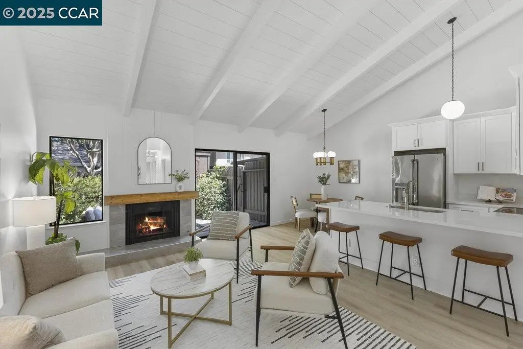 Beautifully Renovated Townhome in Prime Walnut Creek Location This extensively renovated, single-story, end-unit townhome blends contemporary design with everyday comfort in one of Walnut Creek’s most desirable neighborhoods. The light-filled interior features soaring vaulted ceilings, new flooring, and new paint throughout. The kitchen has been completely reimagined with updated finishes, while the spa-like bathroom offers a calming retreat. A custom fireplace surround anchors the stylish living area, and the in-unit laundry, dedicated covered parking space, and extra storage in the private yard add layers of convenience. Enjoy indoor-outdoor living with a private, enclosed patio that feels like a personal oasis—perfect for morning coffee. The home is set in a peaceful, greenbelt-lined enclave that includes access to a community pool and clubhouse. Right across the street, the Iron Horse Trail invites daily strolls, bike rides, and a deep connection to the natural beauty of the area. This location also offers easy access to downtown Walnut Creek’s shopping, dining, and entertainment, plus quick freeway access. Zoned for top-rated schools. Ask about the amazing mortgage rate buy down available for this property!