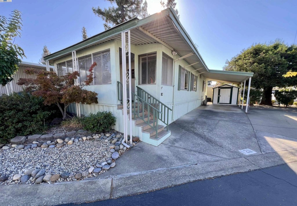 (Back on Market at no fault to seller/property) Beautiful Pleasanton Carefree Living in a Desirable Senior Community! Just moments from historic Downtown Pleasanton, your new home awaits! This charming 2-bedroom, 2-bath residence offers comfort and convenience in a sought-after 55+ community. Step inside to find a welcoming dining area, a bright living space, and a laundry closet with a washer and dryer included. Enjoy year-round relaxation on the screened-in porch, or take advantage of the side-by-side driveway parking, handy tool shed, and corner lot location adjacent to lush park-style landscaping. This home combines low-maintenance living with all the benefits of a vibrant and friendly senior community.
