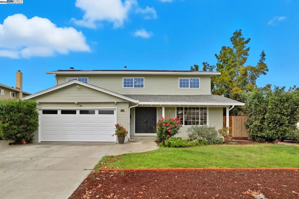 Beautifully updated Newark home on a premium lot of approx. 7,100 sq ft located on a tree-lined street near Birch Grove Park. The modern floorplan offers a formal living room, an elegant dining area, plus one large bedroom or bonus room downstairs. The dining room and the downstairs bedroom have sliding glass doors to the backyard patio for seamless indoor-outdoor living. You will love the updated kitchen with custom shaker cabinetry, solid surface counters, updated stainless steel appliances, pantry, and a view window over the stainless-steel sink. Upstairs, there are 4 spacious bedrooms. Some other features include updated bathrooms, double door entryway, hardwood flooring, dual-paned windows, and solar. Enjoy the spacious backyard and side yard with a concrete patio and a workshop. All these in a beautiful neighborhood close to shops, local eateries, parks, sports courts, Newpark Mall, and schools. Newark is a vibrant city and one of the best commute locations in the East Bay, with easy access to 880, 84/Dumbarton Bridge and BART station.