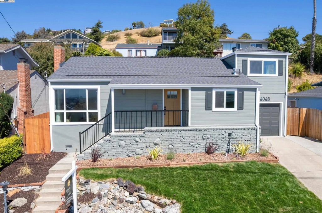 Stunning Bay views, fully renovated and just minutes from Lake Chabot! This move-in ready home blends modern style with everyday comfort. Step inside to discover fresh interior paint, brand new flooring and updated light fixtures that bring a bright and welcoming feel throughout. The spacious living room features large windows that frame beautiful views, creating the perfect place to relax and watch the sunset. The remodeled kitchen showcases quartz countertops, new cabinets, stainless steel appliances and a modern sink and faucet — ready for all your culinary adventures! The newly updated bathrooms feature sleek finishes and thoughtful touches that add a sense of luxury to daily routines. Additional upgrades include new exterior paint, new doors, central heating with air conditioning and an updated garage. Step outside to a spacious backyard that features an outdoor terrace, offering plenty of space to host friends and family or create your dream garden. Situated near schools, parks and shopping with easy access to I-880 and I-580, this home offers both convenience and connectivity. Come check out this hidden gem!