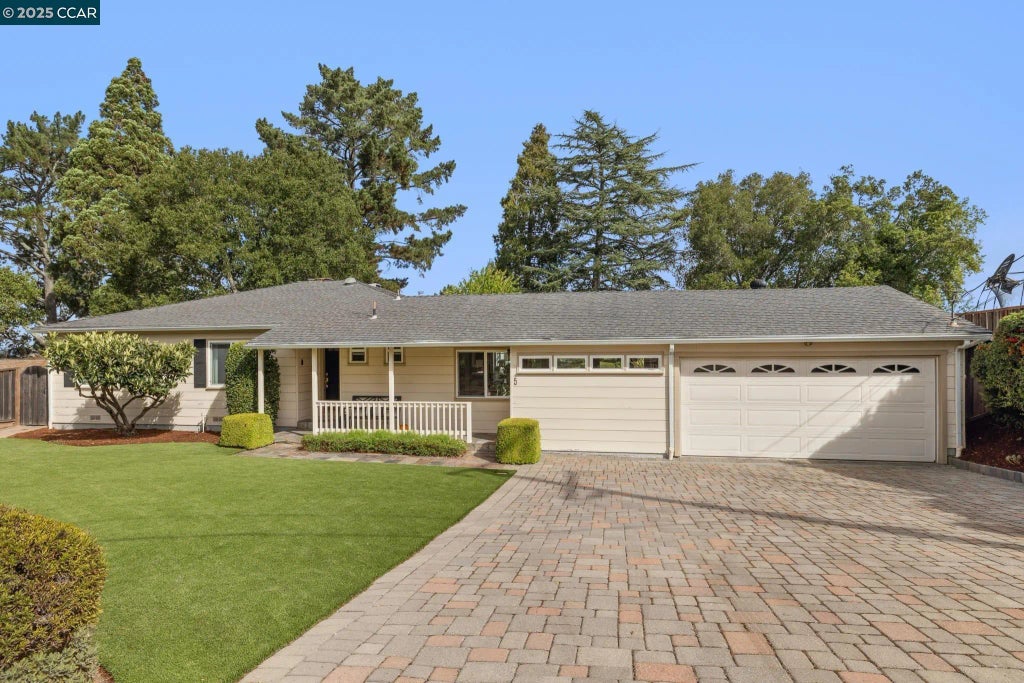 Rare opportunity awaits in one of Glorietta’s most coveted streets. First time in 60 years, this traditional single-level rancher sits on .53AC flat lot w stunning views of Mt. Diablo. Combining classic charm w thoughtful updates, the home offers 1,805± SF of living space, 3 generous bedrooms w ample closets, & 2 beautifully updated bathrooms with timeless finishes. Open-concept living & dining areas are anchored by brick fireplace & custom built-ins, while picture windows & glass sliders invite natural light & seamless access to the backyard. Remodeled kitchen w chic blue cabinetry, crisp white counters, & brass accents flows into spacious family room, where large windows & sliding doors open directly to a lovely patio—an ideal extension of California’s coveted indoor-outdoor lifestyle. Additional highlights include:dedicated laundry room w sauna & garden access. Outdoors w large flat backyard provides endless possibilities: private retreat for entertaining & play, gardener’s haven, or blank canvas for future expansion. Nestled in peaceful private setting & minutes from town, BART, & top-rated schools, walkable to Glorietta Elementary. With iprime location, usable land, & timeless style, home presents immediate comfort & extraordinary potential to create your dream home.