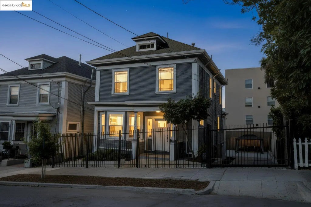 Welcome to 1837 7th Ave, an Ivy Hill gem minutes from Lake Merritt. This beautifully home blends character with thoughtful updates for the perfect mix of charm and efficiency. Sunlit living spaces feature updated floors and timeless architecture, with French doors opening to the living room and original pocket doors leading to the dining room with built-in cabinetry. The updated kitchen is ideal for hosting, with stainless steel appliances and an adjacent laundry room with LG washer/dryer and a full bath. Upstairs, a spacious primary en-suite offers a large bath, joined by two more bedrooms and another full bath. Original hardwood floors run throughout the upstairs, adding warmth and character. Upgrades include fully paid-off solar panels and a high-quality electrical panel for long-term value and efficiency. Outside, enjoy a private backyard retreat with a remodeled deck, fruit trees, and a large gazebo, perfect for entertaining. A roomy basement allows for more storage, income opportunities, or a future remodel. An electric gate provides secure off-street parking and a spacious driveway. Conveniently located near parks, shops, and commuter routes to downtown Oakland and SF, this is a rare opportunity to own a move-in ready sanctuary in Oakland’s beloved Ivy Hill neighborhood.