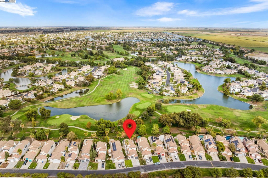 Beautiful Golf Course Retreat in a Gated Community Welcome to this light-filled home located behind the gates of the Discovery Bay Country Club! Your rear neighbor is the serene golf course, offering peaceful views of green fairways and tranquil ponds. Step inside to soaring ceilings, fresh interior paint, and a spacious open layout perfect for entertaining. The huge kitchen is a chef’s delight, featuring generous granite counters, abundant cabinetry, and a large island that flows seamlessly into the family and dining areas. Enjoy year-round comfort with a newer HVAC system and newer water heater. Outside, unwind beneath the beautiful new pergola—the perfect spot to sip morning coffee while listening to the birds sing and taking in the fresh air. Your living space opens to the backyard for easy indoor-outdoor living, while upstairs is the Primary Suite and bedroom, which offer plenty of space. Bedroom and full bathroom downstairs offer a great guest room or home office. Additional highlights: two-car garage, low-maintenance landscaping, community security, and nearby golf, lakes, and walking paths. Come experience Discovery Bay living—where resort-style tranquility meets everyday comfort.