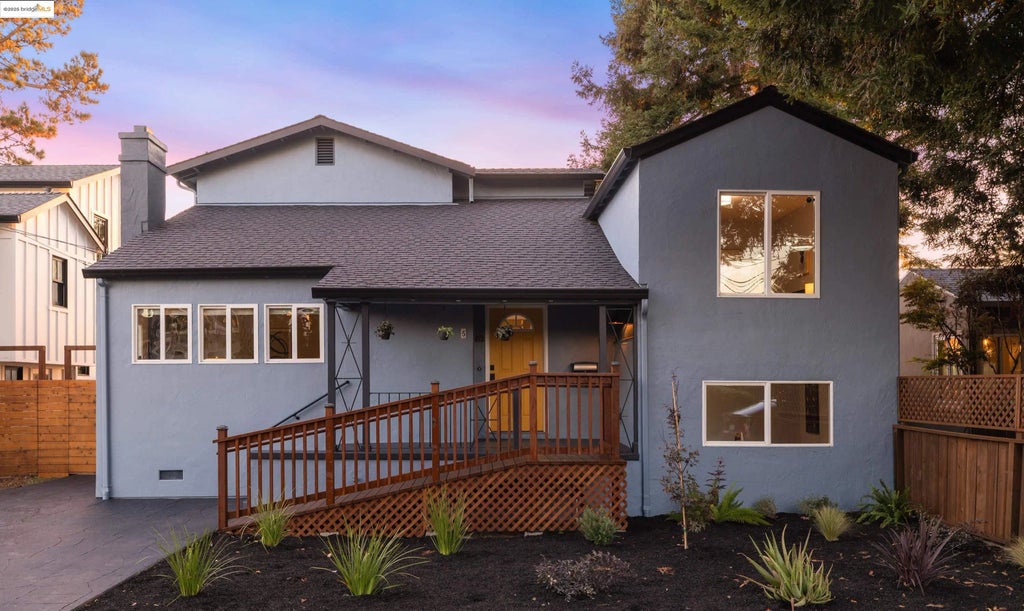 This stunning North Berkeley home was taken down to the studs, expanded, and fully remodeled in 2006, offering 2,498± sq ft of light-filled space with 4+ bedrooms and 3.5 bathrooms. Ideally located on a quiet cul-de-sac just blocks from North Berkeley BART, it sits near Crystal Red and Cedar Rose Parks, backs to the West St. Path and Ohlone Greenway, and is close to shops, restaurants, and transit. The main level features a formal entry, vaulted ceilings in the living room, a custom tile fireplace, and an expansive chef’s kitchen with a center island, second sink, 48” Viking range, commercial fridge, cherry cabinetry, granite counters, and stainless appliances, all opening to the dining area and a rear deck with spa. A bedroom, half bath, and handicap-accessible ramp complete this level. Upstairs includes two bedrooms and a remodeled bath, while the top floor hosts a private primary suite with dual closets, custom tile bath, and French doors to a lovely balcony. The lower level offers a plus room, large flex space, remodeled bath, laundry, and rear entry. Additional highlights include a detached office/studio with electricity, landscaped yard with lawn, dual-pane windows, wide plank wood floors, 2-car parking pad, and updated systems, drainage, and foundation.