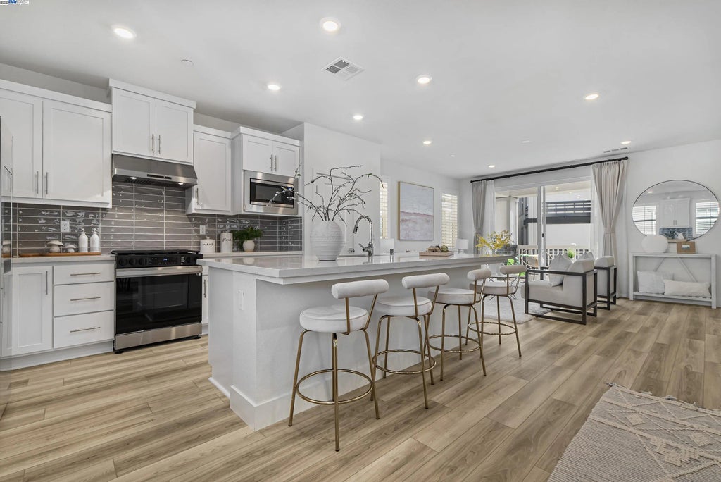 A modern home boasts a great floor plan featuring 3 spacious bedrooms and 3.5 luxurious bathrooms, each bedroom providing the ultimate privacy with its own en-suite bathroom.One bedroom and one bathroom are located on the first floor. One may enjoy the bright open spaces as natural light floods the home on a prime location.Upgraded flooring and plush carpet are throughout the home.The kitchen stands as a centerpiece, showcasing a full backsplash, quartz countertops, and sleek stainless steel appliances, seamlessly connecting to California Room—ideal for entertaining. Custom Hunter Douglas shutters and drapes add a touch of elegance to every window while the primary bedroom offers a customized closet system and tranquil en-suite. On the third floor, there are built-in desk and cabinets, perfect for a home office setup. The garage has been upgraded with walls and electric car charging station prep. The solar panel system has been fully paid-off. Bridgeway residents enjoy a host of amenities like a clubhouse, a swimming pool, dog park, and playground. Nearby National Wildlife Refuge offers open space with trails and nature to explore. The communicty is close to Meta and Tesla, among other major employers. Easy access to Dumbarton bridge and I-880.