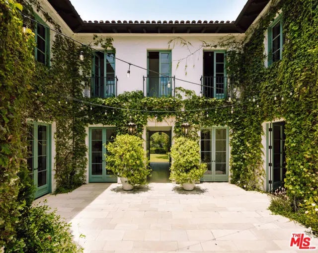 Brand new look!! This stunning California Mediterranean residence, nestled in the sought-after street of the Pacific Palisades' Riviera neighborhood, presents a rare opportunity to own one of the Westside's most exquisite properties. Crafted by acclaimed architect Thomas Proctor, this timeless home boasts meticulous attention to detail in its finishes, windows, arches, wrought iron gates, fireplaces, and more, appealing to the most discerning of buyers. Embracing the allure of Mediterranean-style architecture bathed in sunlight, it seamlessly blends Californian sensibilities with balconies, patios, porticos, and a captivating loggia that offers sweeping panoramic vistas across the canyon to the mountains. The outdoor living area, featuring a limestone fireplace and heated floors, becomes a haven for enjoying breathtaking sunsets. A splendid vaulted gallery leads to a grand living room on one side and an elegant dining room on the other. A walnut-paneled circular office/library stands as a private retreat, connected to the entry courtyard. At the heart of the home lies a den/family room with a limestone fireplace, complemented by arched doors opening to the loggia, yard, or kitchen. The breakfast area, adorned with a raised fireplace, and a spacious kitchen, equipped with a centra
