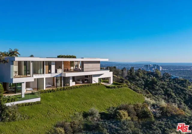 The View Estate is a serene architectural masterpiece sitting on the premier lot in the ultra-exclusive Trousdale Estates enclave. It offers unobstructed jetliner canyon, city, and ocean views from every room. This new construction showcases unparalleled fit and finishes, imported stonework, floor-to-ceiling glass walls, custom furniture, and soaring ceilings. Designed by world-renowned architect Paul McClean with interiors designed by LA based Bespoke interior design firm GD Studio. Greeted by a 100-year-old olive tree, pass through the gates to discover dramatic water features and a zero-edge waterfall leading to a 10+ car garage with turntable. Inside, tranquil formal living and dining rooms with warm European oak paneling and a marble fireplace open to a breathtaking backyard oasis complete with multiple fire features, flat lush lawns, and an infinity pool/spa that spills seamlessly into the skyline. There are two world class gourmet kitchen's that are outfitted with Calacatta Borghini marble and Miele appliances. The main Kitchen is the perfect gathering space and the Chef's kitchen is clearly Michelin star. Two expansive primary suites feature fireplaces, spa-like bathrooms, and dual closets. Take the elevator down to a day-lit entertainment lounge bathed in natural light,