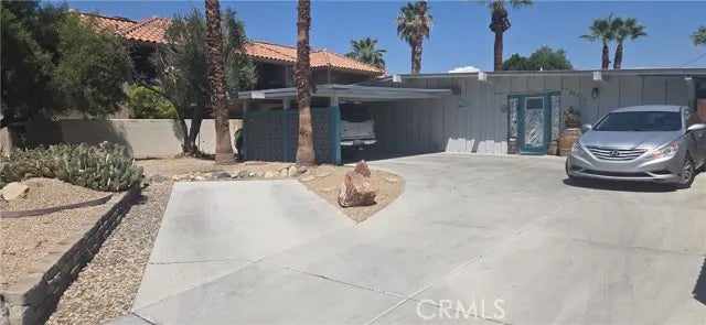 2 Bedroom 1 Bath-- 1/2 half of Duplex with Pool Now Available. This charming 2 Bedroom Duplex is just off Hwy 111 near the Valley's golf cart / biking path. Located within walking distance to food and entertainment, it is the perfect spot to enjoy all that Palm Desert has to offer. The home opens to a large family room with a real brick fireplace for these cool evenings. The cute and cozy kitchen has lots of cabinet space for all your goodies. Both bedrooms offer tile flooring for easy cleaning. There is a washer, dryer and refrigerator included in unit. The back yard is shared with a large semiprivate pool in the middle. Each tenant has their own area for BBQ's and family fun. Central air and heat is include int the unit. Centrally located it is sure to go fast, come and take a look.