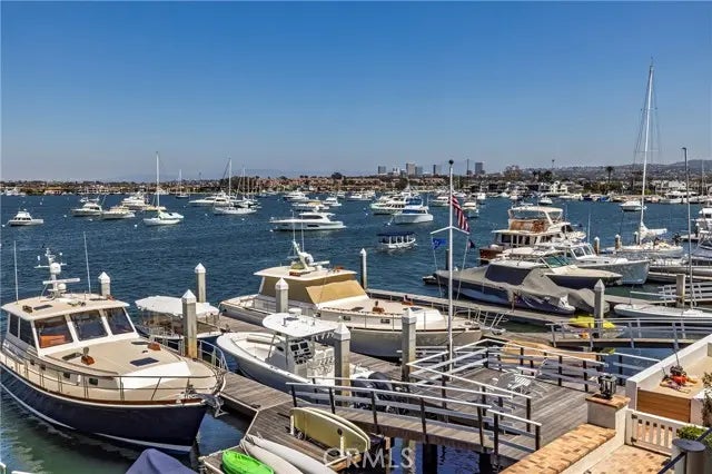 Rare Double-Lot Bayfront Opportunity in Newport Harbor. A truly once-in-a-lifetime offering, this custom-built bayfront estate sits on a rare double lot in one of Newport Harbor’s most coveted locations. Showcasing nearly 60 feet of bay frontage, the property commands sweeping views of the turning basin, city lights, Fashion Island, and the surrounding mountains—an ever-changing backdrop of Southern California beauty. Designed ahead of its time, the residence welcomes you through a dramatic gated entry featuring a tranquil pool, spa, and waterfall. Double glass doors open to reveal soaring ceilings and expansive living spaces that exude coastal sophistication. The grand living room with fireplace, sit-down bar, and formal dining area is ideal for effortless entertaining. The gourmet's kitchen is a dream, featuring sleek black granite countertops, custom cabinetry, a center island with a gas range, breakfast nook, built-in desk, and side-by-side Sub-Zero refrigerator and freezer. The main level also offers a private office or den, guest bedroom and bath, maid’s quarters, and an oversized three-car garage. A sweeping staircase—or private elevator—leads to the upper level, where the primary suite offers bayfront views, a fireplace, dual bathrooms, and custom walk-in closet