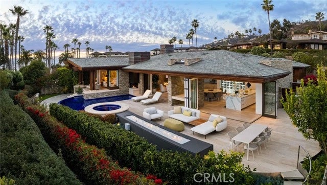This stunning contemporary estate, set in a prime front-row location at the renowned Montage Resort offers breathtaking ocean views and an unparalleled lifestyle of grandeur. Showcasing exceptional craftsmanship, this property features the finest materials, seamlessly blending modern luxury and coastal tranquility. The thoughtfully designed interior offers five ensuite bedrooms and eight opulent bathrooms, adorned with Calacatta marble, Albertini Italian doors, and zebra wood finishes. The main level boasts an airy, open-concept living space with soaring ceilings, glass fireplace, and a climate-controlled wine display. A grand skylight invites ample natural light on both levels, while expansive glass walls seamlessly merge indoor and outdoor spaces, framing uninterrupted ocean views. Upstairs features a state-of-the-art Bulthaup kitchen, equipped with premium Miele and Wolf appliances, a stainless-steel pantry, and a Dacor wine station extends to an oceanfront terrace-perfect for entertaining. Stepping outside, the home's private outdoor retreat features a glass fire pit, full kitchen with a built-in Viking grill, an ice maker, refrigerator, and a Kalamazoo pizza oven. Completing this resort-like setting, this property features an outdoor shower and a luxurious pool and spa, acce