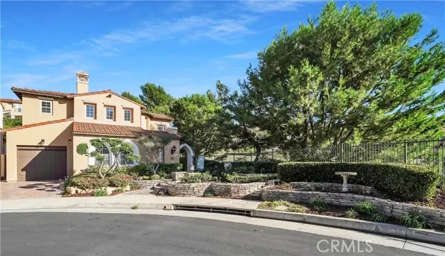 Beautifully maintained home in the prestigious gated community of Tesoro Villas in Newport Coast. Ideally situated at the end of a quiet cul-de-sac and just steps from a private walking path leading directly to award-winning Newport Coast Elementary School. This highly sought-after floor plan offers 3 generously sized bedrooms, 2.5 bathrooms, and an abundance of natural light throughout. The gourmet, highly upgraded kitchen features stunning quartzite countertops, stainless steel appliances, and a built-in breakfast nook. A custom center island opens seamlessly to the spacious family room, complete with a stone fireplace and bi-fold French doors that lead to a beautifully landscaped, private backyard perfect for indoor-outdoor living. An impressive living room showcases soaring ceilings and a cozy fireplace, while the formal dining room features French doors opening to a charming private courtyard, ideal for entertaining. A striking wrought-iron staircase leads to the upper level. Upstairs, the luxurious primary suite offers a serene retreat with French doors opening to a large private balcony. The elegant primary bathroom includes dual quartz vanities, a soaking tub, a marble walk-in shower, and dual walk-in closets. Residents enjoy resort-style amenities, including the Tesoro V